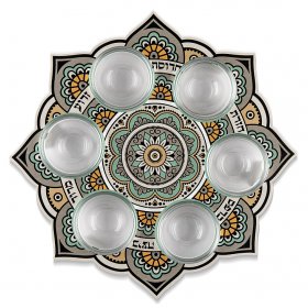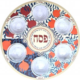 -    Raised Seder Plate with Glass Bowls, Colorful Pomegranate Design - Dorit Judaica$81.69 Raised Seder Plate with Glass Bowls, Colorful Pomegranate Design - Dorit Judaica$81.69