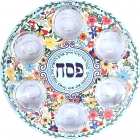 -    Seder Plate with Glass Bowls, Colorful Flowers and Hebrew Wording - Dorit Judaica$81.69 Seder Plate with Glass Bowls, Colorful Flowers and Hebrew Wording - Dorit Judaica$81.69