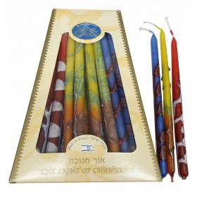 Jews always beautify ritual items. The humble Chanukah candle is no exception. Canaan-Online takes pride to offer you a vibrant dramatic selection of candles that will bring a splash of glowing color to your Menorah table.