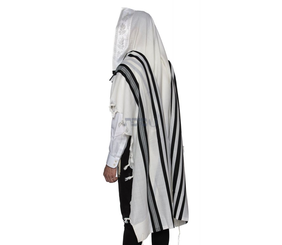 LaMenatzeach Wool Tallit Non Slip Prayer Shawl - Black Stripes