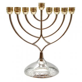 Silver and Gold Chanukah Menorah, Curved Branches For Oil$69.83New arrival! -