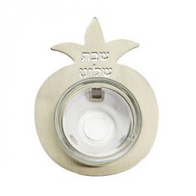 Pomegranate Salt Holder with Glass Dish and Shabbat Shalom, Silver - Yair Emanuel$19.92 -