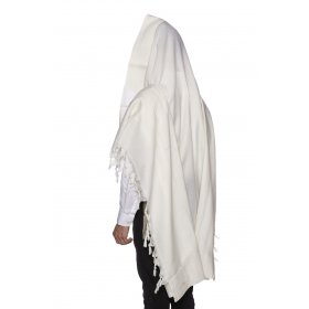 A Traditional Tallit, (Prayer Shawl), usually refers to the size, fabric, and design of the prayer shawl worn by a praying Jew throughout the centuries. Its body length is wrapped around the shoulders. The fabric is preferably wool, although cotton, silk, and other mixtures are acceptable. The traditional design, derived from Halachic sources, is a series of black stripes of various widths along the tallit.